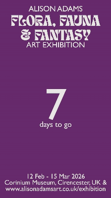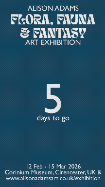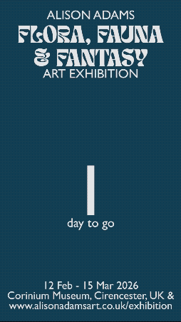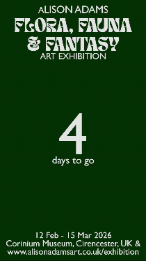 Mark it in your diary - my month-long, solo 'Flora, Fauna & Fantasy' contemporary art exhibition starts in mid-February. It is going to be held at the Corinium Museum in Cirencester, England, but will be present here online too - so keep your eyes on! I am holding an opening on Saturday 14th February, 2026 to which you are invited and I also aim to be there most Fridays and Saturdays. For more information go to the Exhibition page.