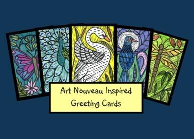 A new arrival: Packs of five blank greeting cards inspired by the Art Nouveau style are now available in the Store.