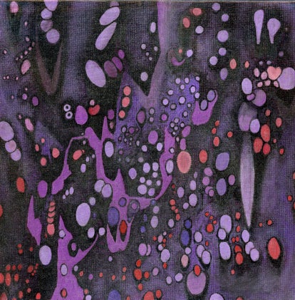 Chromatic Cascade is an abstract painting on stretched canvas that evokes a sense of moody dynamism and rich, tactile depth. Set against a deep black background, rivulets of metallic purple, burgundy, and plum cascade creating sinuous trails. Amid the fluidity, bubbles of colour rise and punctuate the surface. A thin coat of glitter varnish adds a final subtle shimmer (not evident in the photos!). The overall effect is at once lush and sombre, a chromatic descent into depth, memory, or a dream.