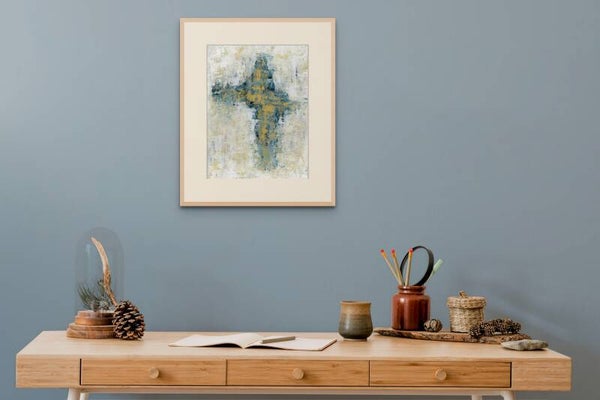 This abstract acrylic painting on canvas board evokes a quiet tension and harmony through the suggestion of a meeting point — perhaps a cross, a convergence, or an intersection of two elemental forces. With layered brushwork and nuanced shifts in tone and texture, the composition explores duality: light and shadow, motion and stillness, presence and absence. The central form invites interpretation, acting as a symbolic threshold or axis around which the surrounding energy flows. At once contemplative and dynamic, the piece invites viewers to consider moments of union, balance, and transformation.