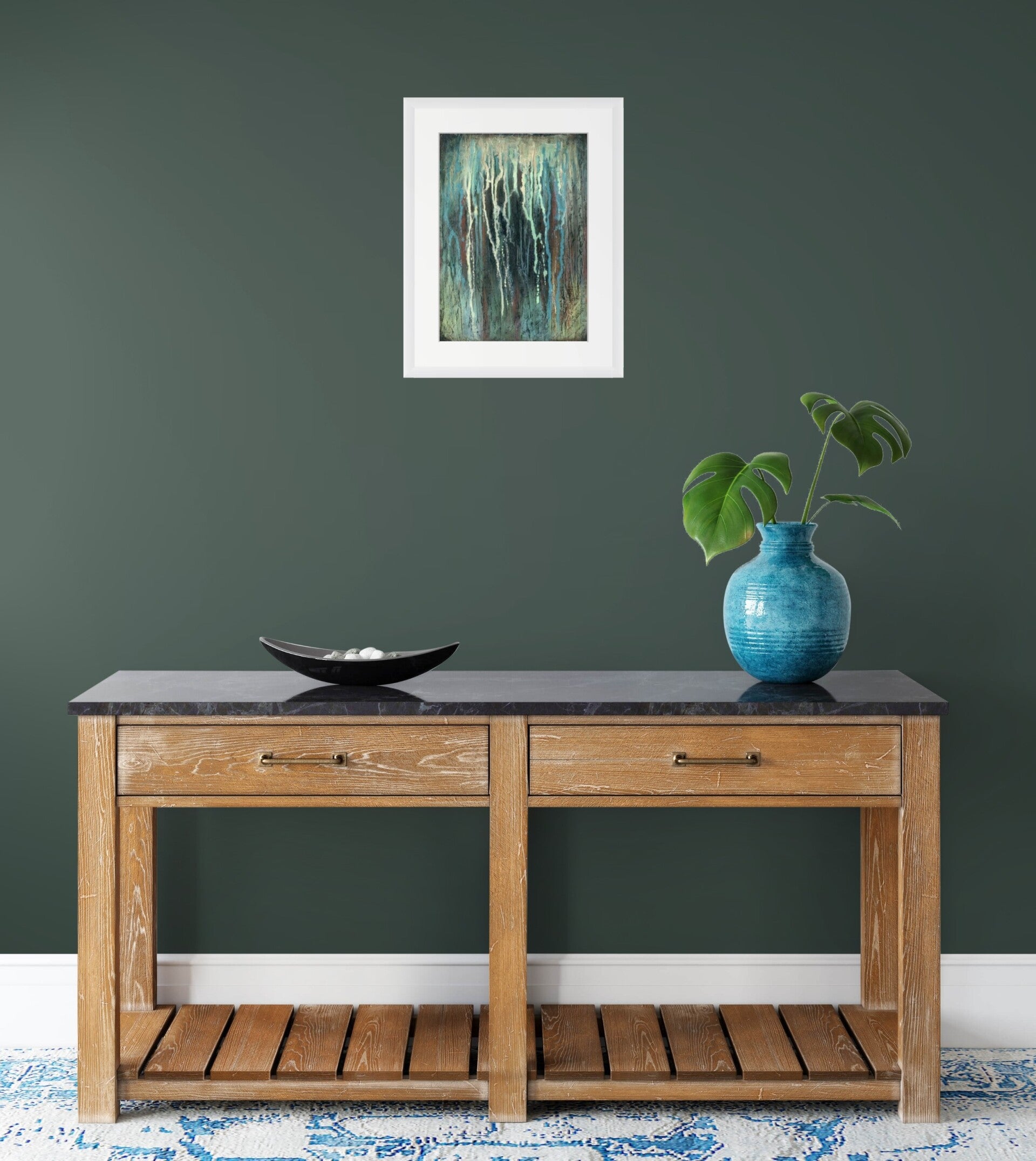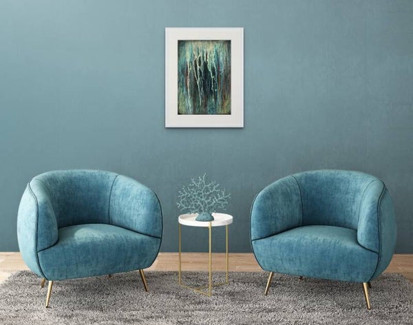 In this textured acrylic painting on canvas board, the mouth of a cavern is suggested through rich layers of paint and intricate textures. The composition plays with shadows and light, evoking a sense of depth and mystery as the rocky, jagged edges of the cavern's entrance emerge from the canvas. Earthy tones blend with darker hues, creating a compelling contrast that draws the viewer's eye toward the cavern's enigmatic opening. The textured surface invites tactile engagement, enhancing the feeling of an ancient, hidden place — one that beckons exploration and wonder.
