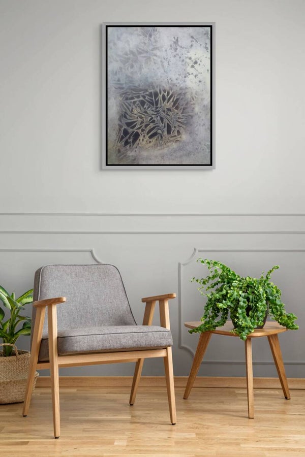 This abstract acrylic artwork on stretched canvas, rendered in subtle hues, depicts an imagined organic form. The soft colour palette and fluid lines suggest a natural yet otherworldly shape, inviting the viewer to interpret the piece as a reflection of growth, transformation, or the essence of life itself. This work was created using the plastic wrap technique (where plastic film is placed into watery acrylic paint) which produces interesting organic-seeming forms. A video detailing this is available here. I set out to create an artwork in a pared-back colour palette, and the finished work suggested itself to me after the initial stage. This picture practically painted itself and pretty-much all in one sitting (which is unusual).