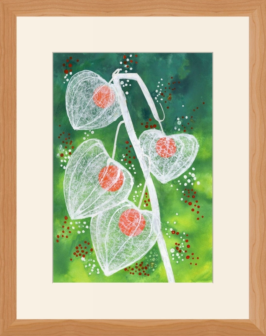 A 19 x 14 cm (7.5 x 5.5 in) colour print of Fruiting Physalis, signed and presented in a light-cream mount measuring 25 x 20 cm (10 x 8 in) ready to frame.