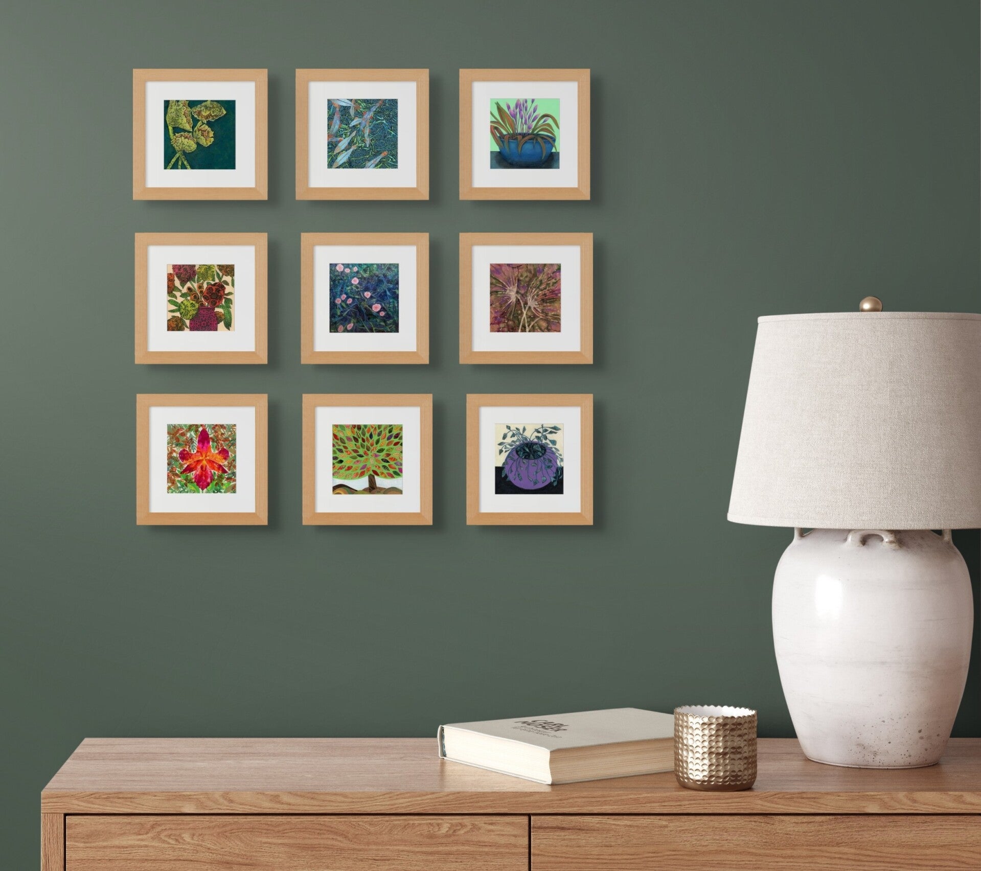 This blank mounted greeting card measures 6 x 6 inch (15 x 15 cm) with the artwork being 4 x 4 in (10 x 10 cm) and comes with a white envelope. The mounted card can be framed in a 6 x 6 inch frame and some fun suggestions are illustrated.