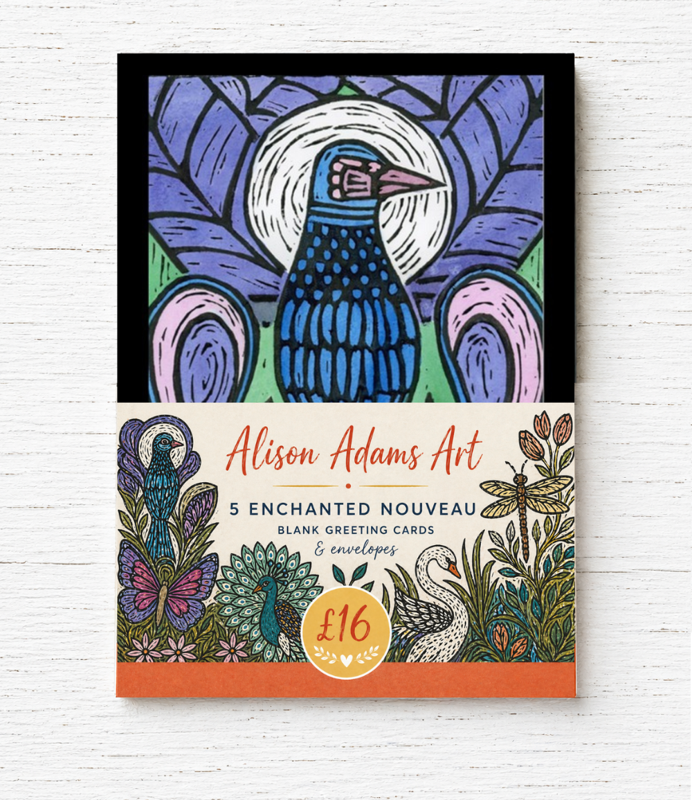Each card measures 17.8 x 12.7 cm (7 x 5 in)* and is left blank inside for your own personal message. Printed from original artwork by Alison Adams, the collection combines bold colour, stylized nature motifs and a contemporary handcrafted feel.