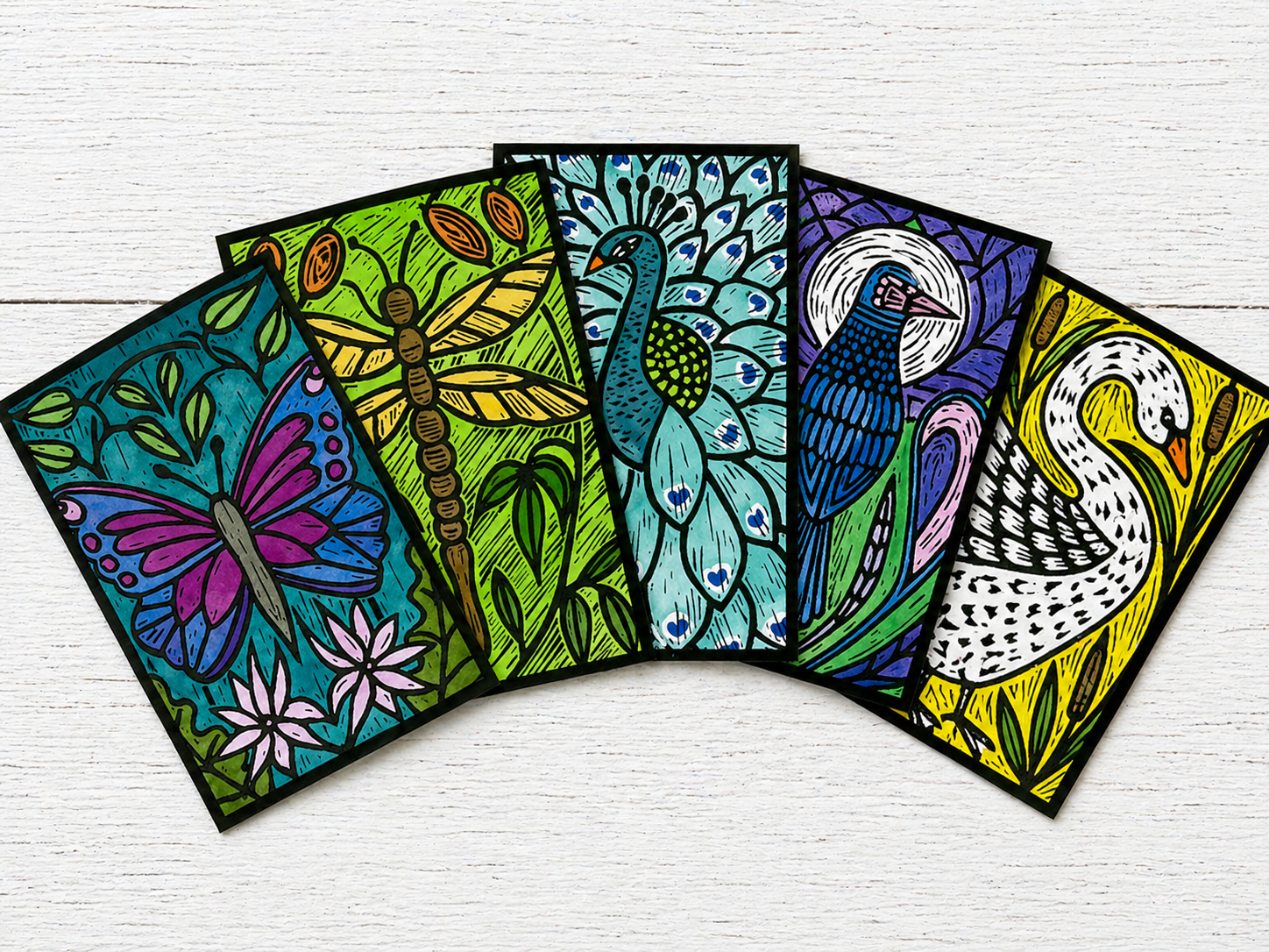 Discover the elegance of Art Nouveau with this beautifully curated pack of five portrait greeting cards, each inspired by the flowing lines and decorative beauty of the movement. Featuring original designs of a Butterfly, Dragonfly, Peacock, Raven and Swan, these richly detailed cards are perfect for birthdays, thank you notes or thoughtful correspondence.