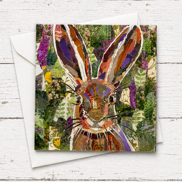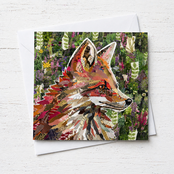 A collection of six 15 x 15 cm (6 x 6 in) square blank greeting cards featuring richly detailed animal collage artwork by Alison Adams. The set includes Hypnotic Hare, Baroque Fox, Heavenly Hare, Floral Pheasant, Floral Mandarin Duck and Floral Peacock — a vibrant menagerie inspired by nature, texture and pattern.