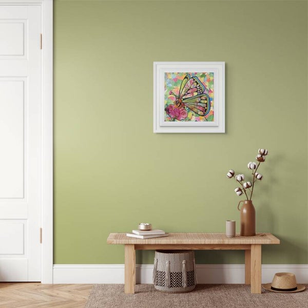 Floral Metamorphosis is a vibrant mixed-media collage that celebrates the harmony between nature and transformation. At the heart of the piece, a butterfly—its wings intricately filled with blooming flowers—rests on a richly textured blossom. The wings serve as windows to a garden in full bloom, symbolising growth, renewal, and the beauty of change. Surrounding this central figure is a kaleidoscope of torn paper textures—maps, sheet music, and colorful scraps—representing the diverse paths and rhythms of life. This artwork invites viewers to find wonder in the fragments, and to see transformation not as a destination, but as a continuous, blooming journey.