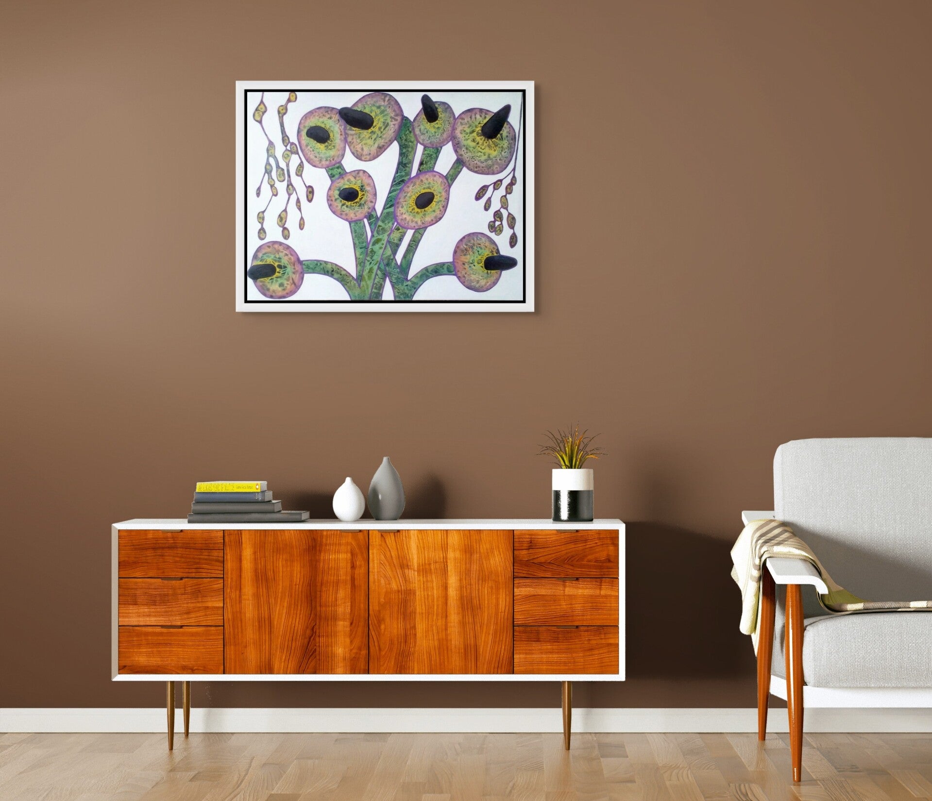 Supplied varnished** with a 1 cm white wooden floating frame and ready to hang. If you would like me to arrange for a different colour or width of floating frame, please email me having placed your order stating your preferences (note that this may incur an extra charge).***