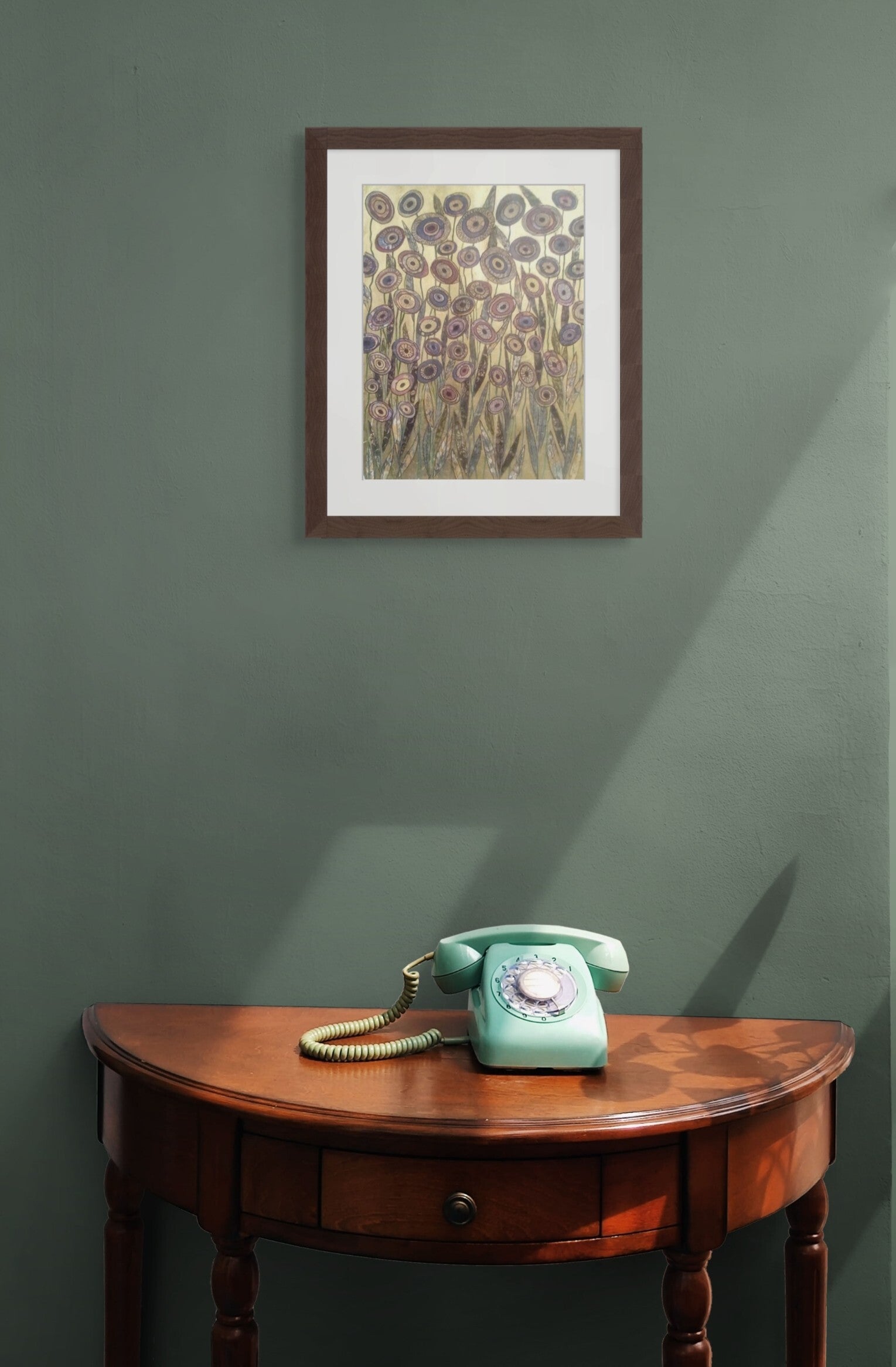 Supplied ready to hang with a double white mount and dark wood frame.***