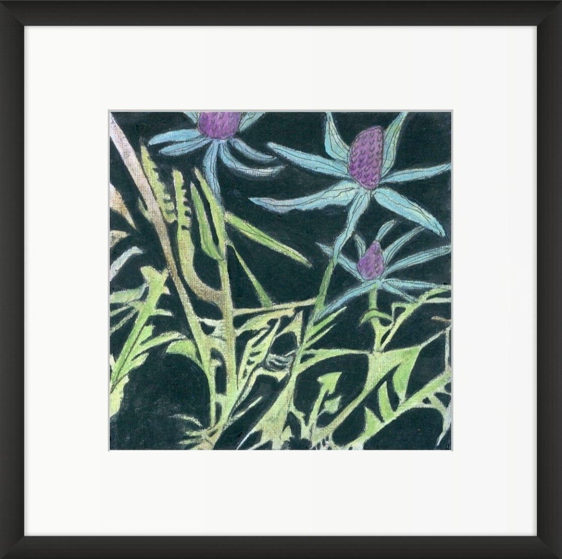 A 15 x 15 cm (6 x 6 in) colour print of Sea Holly Thicket, signed and presented in a white mount measuring 25 x 25 cm (10 x 10 in) ready to frame.