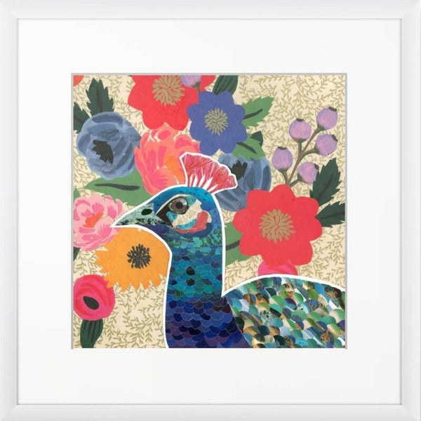 A 15 x 15 cm (6 x 6 in) colour print of Floral Peacock, signed and presented in a white mount measuring 25 x 25 cm (10 x 10 in) ready to frame.