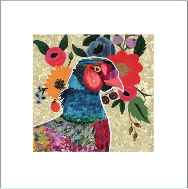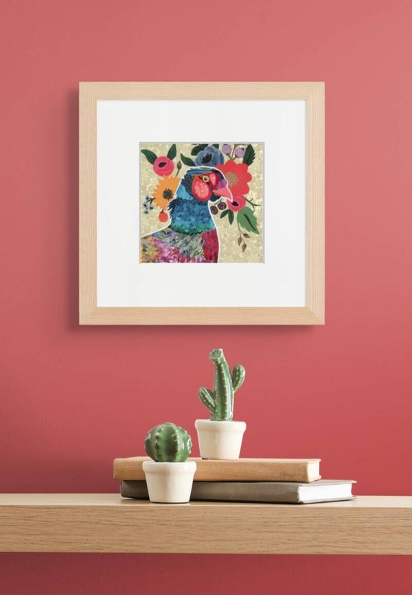A 15 x 15 cm (6 x 6 in) colour print of Floral Pheasant, signed and presented in a white mount measuring 25 x 25 cm (10 x 10 in) ready to frame.