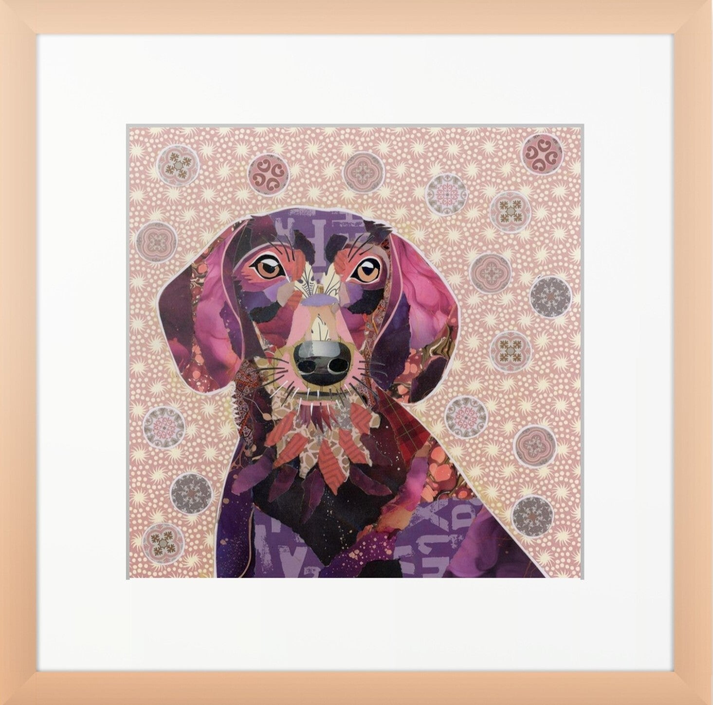 A 15 x 15 cm (6 x 6 in) print of Chocolate and Tan Dachshund, signed and presented in a white mount measuring 25 x 25 cm (10 x 10 in) ready to frame.